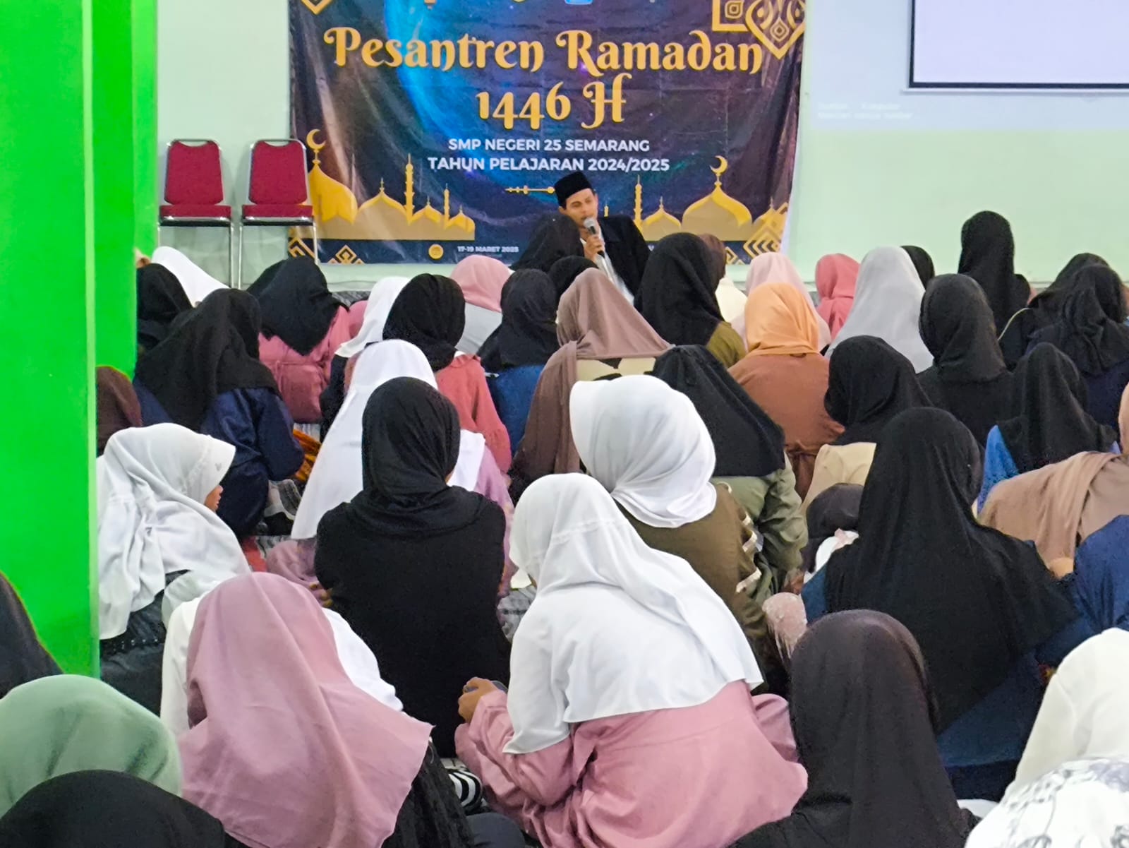 Semarang – SMP Negeri 25 Semarang kembali mengadakan kegiatan Pesantren Ramadhan guna meningkatkan keimanan dan akhlak siswa. Kegiatan ini berlangsung mulai hari Senin, 17 Maret 2025, dengan pembagian jadwal per tingkat kelas. Acara bertempat di Masjid Al Hidayah SMPN 25 Semarang untuk siswa putra dan Aula SMPN 25 Semarang untuk siswa putri.